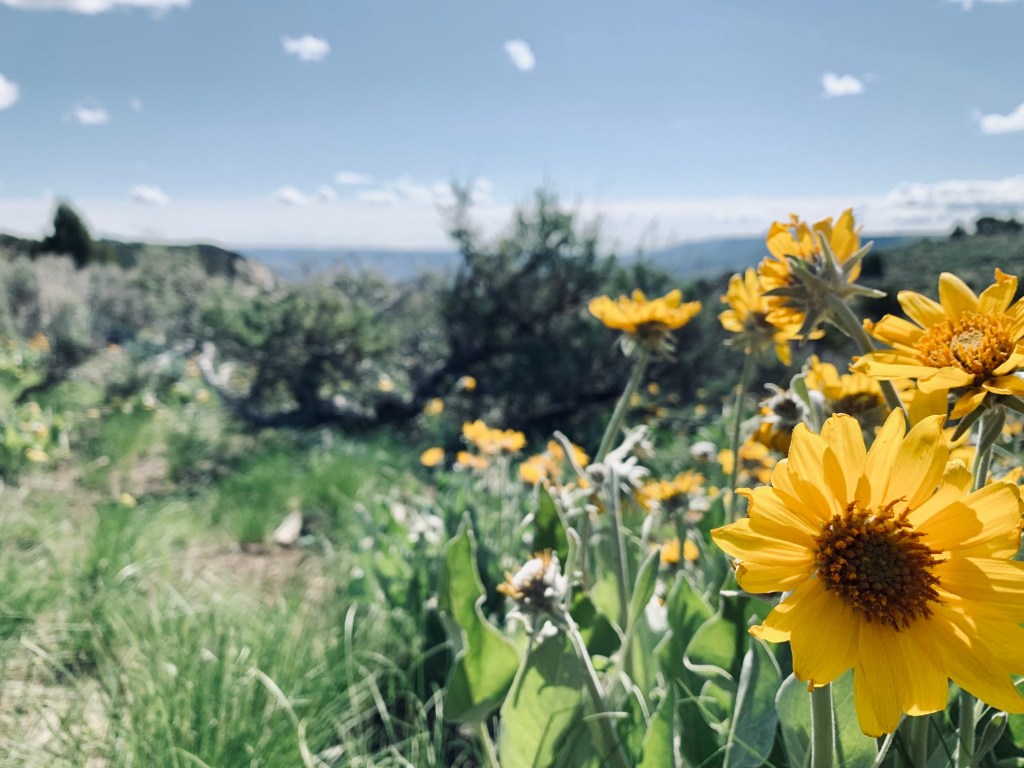 There’s no one around. Just sage, wildflowers, birds, and an intermittent breeze. The only indication of humans is a metallic dot of an airplane, leaving an etch-a-sketch line in an otherwise clear sky.