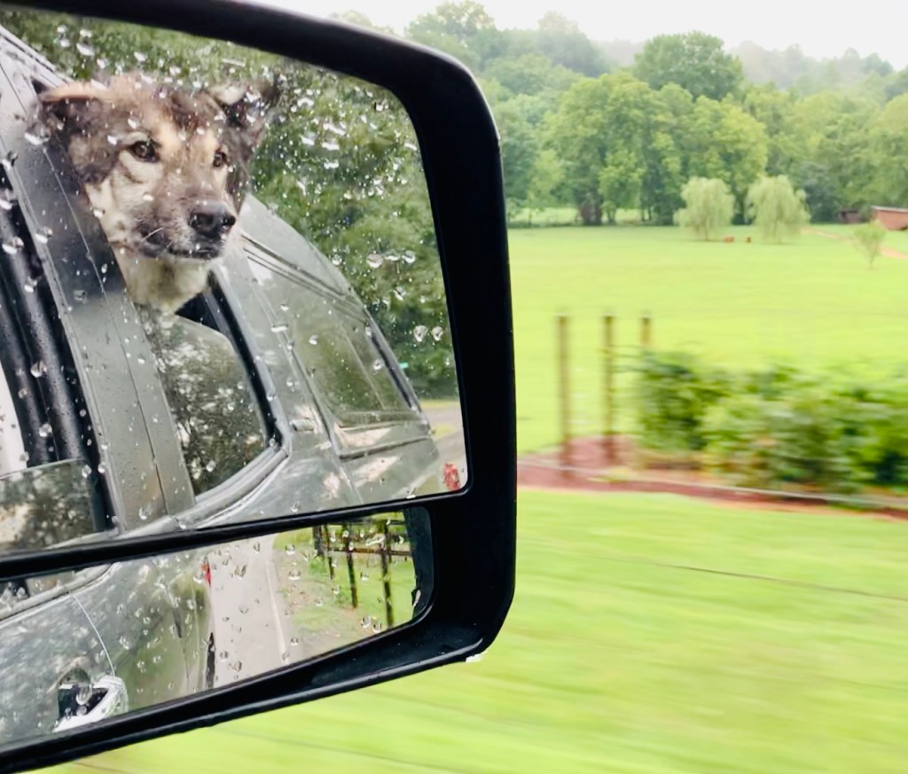 Rain had been tapping on the roof of the trailer off and on, the outside skies a clumsy mess of clouds. I made some English breakfast tea in a to-go cup, clipped the leash on Elvis, and hopped into the passenger seat of the Tundra.